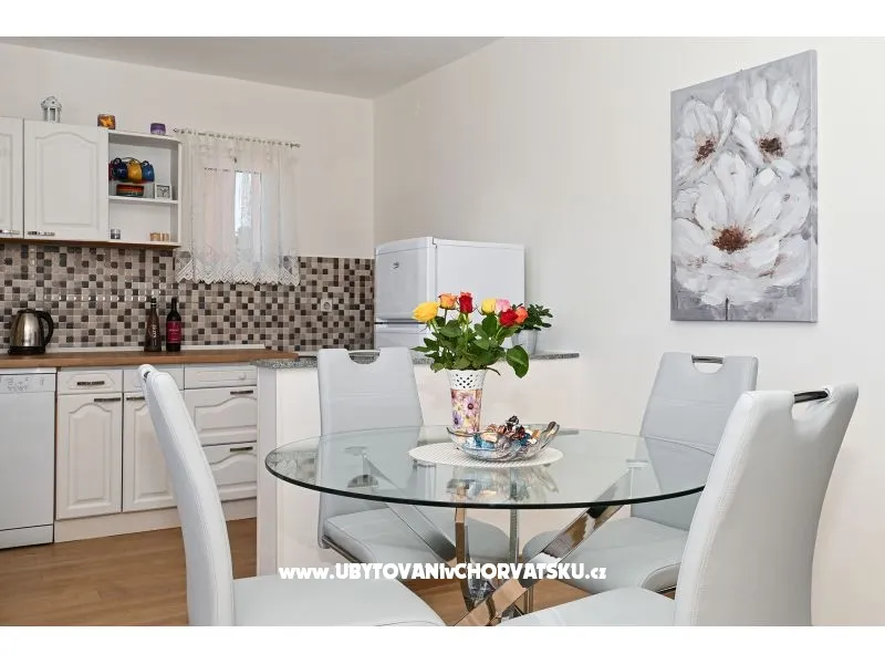 You pay 35% deposit + reservation fee per reservation. The rest is paid upon arrival at the facility. The minimum stay is 5 nights in the high season (July and August). Check-in is from 2pm; Check-out until 10 am. Apartment Radelic is located 150 m from the beach (type of beach: concrete, pebble). It has 1 private balconies / terraces with a sea view and 1 with a garden view. There is an additional barbecue area, with a kitchenette and an outdoor shower in front of it. The area is shared with the owners. Baby cot-on request. Outdoor facilities: outdoor grill, car access, private parking, garden, outdoor shower