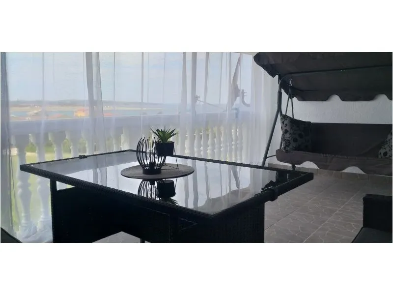 Accommodation clean, standard equipment. The kitchen is small, a dishwasher would be useful. Little storage space when accommodating 6 people. Enough towels and plates. In the children's room, the bunk bed can only be used for small children - the beds are low above each other. Unfortunately, almost all beds are very uncomfortable for us - feathers, hard, creaky, even the blue high bed looks comfortable and firm. Air conditioning without problems, quite large terrace with a partial view of the sea. Unfortunately, the bathroom is of an older date, only a curtain in the shower. A mop for wiping was missing - quite an important thing after a shower. I positively rate the washing machine, air conditioning, wifi and television. Beaches accessible on foot, nearby bistro, bakery, food, ice cream. The guests were smoking below us and this made our stay quite annoying. These are smoking apartments. We had a pleasant holiday despite the above-mentioned shortcomings.
