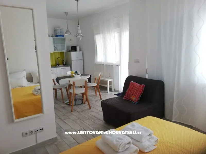 Apartment for 2-3 person next to the sea. Apartment amenities: bedroom with double bed, equipped kitchen, balcony overlooking the sea, bathroom, air condition, Sat-tv, free parking place and grill.
